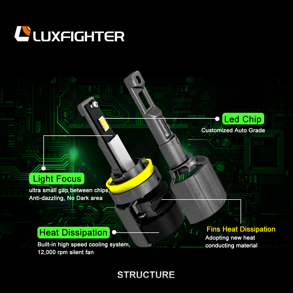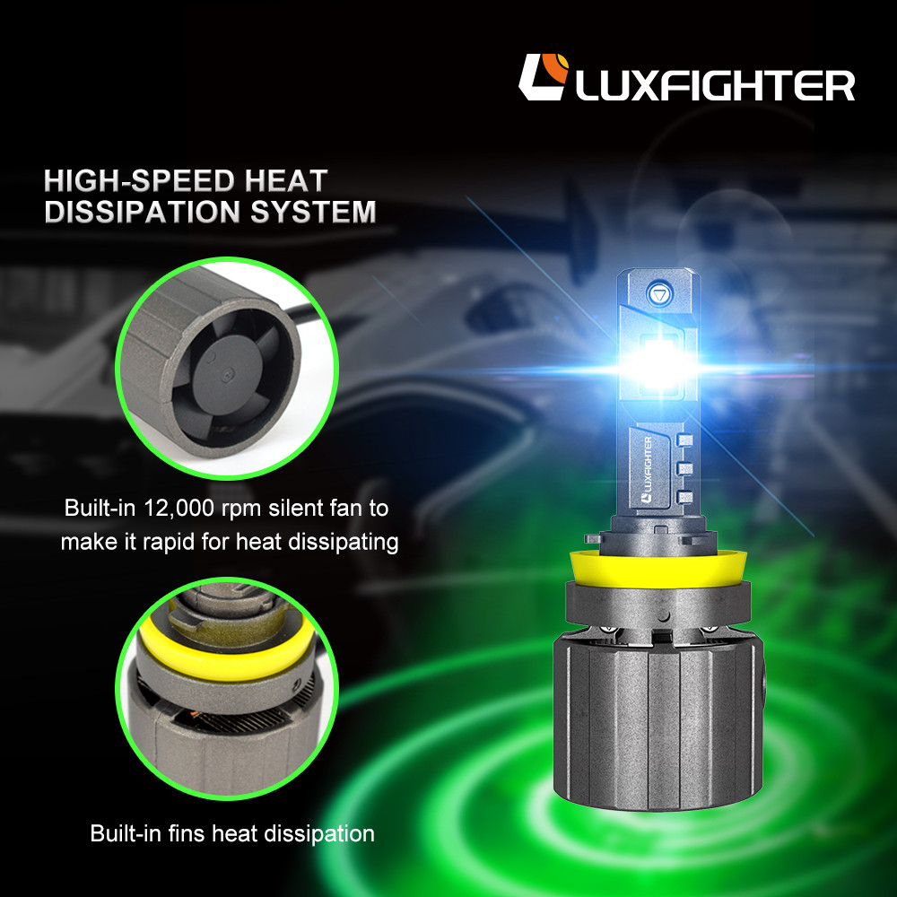 3. Projekt rozpraszania ciepła potrójnego: 12 000 obr / min wentylator chłodzący i 90 stopni przechylający płyn cieplny, te projekty rozpraszania ciepła sprawiają, że żywotność lampy LED LUKSFIGHT H7 przekracza 50 000 godzin.