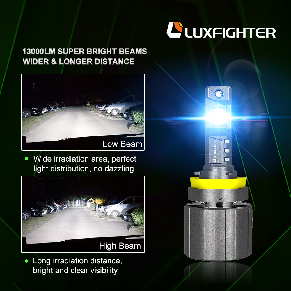 1. Ulepszona jasność 600%: Ulepszone przez Luxfightera żarówki LED H7 wynoszą 130 W na zestaw, zapewniając do 600% jaśniejsze niż żarówki LED LED OEM. 6000-6500K fajny biały i 12 000 lm przynoszą wyraźną wizję podczas jazdy